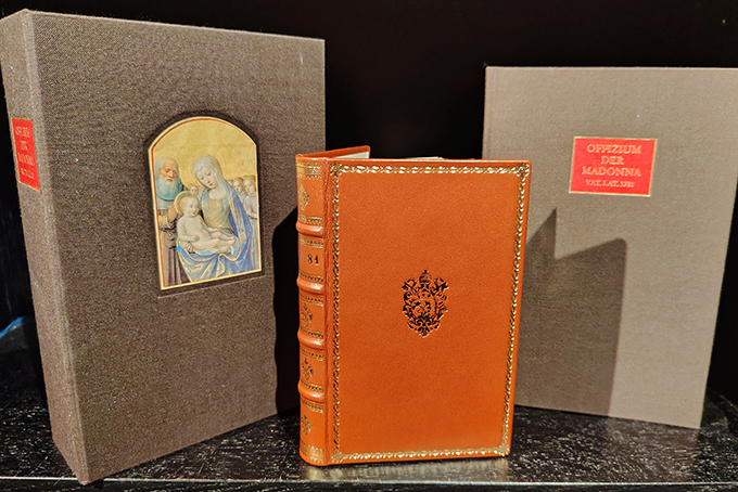 Faksimiledruck – Officium der Madonna. Doc. Vat. lat. 3781. Vollständiger Faksimiledruck mit einer Einführung „Das Vatikanische Stundenbuch Jean Bourdichons“ von Eberhard König. Stuttgart, Belser 1984. Faksimileband: 10,5 x 16,5 cm, Begleitband 8°, Kassette Gr.-8°. Faksimile: (1), 133, (2) Bl. Begleitband: 136, (4) S. mit Abbildungen, OGanzlederbd. mit Goldpr. u. Ganzgoldschnitt, OLwd., in Leinenschatulle mit farb. mont. Deckelillustration. Tadelloses Exemplar. (Neupreis: 590,– DM) * Bourdichon (1457 – 1521), Maler und Illuminator von Handschriften, war einer der bedeutendsten Künstler der französischen Frührenaissance und leitete die Schule von Tours. Dieses Werk ist Ende des 15. Jahrhunderts entstanden.