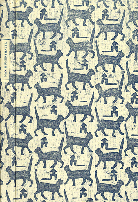 Oltner Liebhaberdruck – Mumenthaler, Max, Die Liebe von der Katze kommt. Mit 7 ganzseit. Photolithographien von Otto Bachmann. Olten 1964. 67, (3) S., 1 Bl., Titel in Ziegelrot gedruckt, OPp. mit Kopffarbschnitt. Sehr gutes Exemplar. EA. * 3. Oltner Liebhaberdruck. Eins von 485 (ges.625) handschr. nummer. Exemplaren der Normalausgabe im bibliophilen Pappband mit einem Batik-Modeldruck-Überzugspapier, in der Werkstatt von Hugo Peller von Hand gebunden. – Die Gedichte wurden aus der Bembokursiv gesetzt u. auf Zerkallbütten gedruckt.