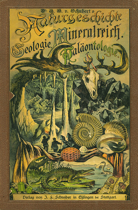 Mineralien – Kenngott, A., Naturgeschichte des Mineralreichs für Schule und Haus. Zwei Teile in einem Band. Erster Teil: Mineralogie (vierte verbesserte Auflage). Zweiter Teil: Geologie und Paläontologie. Eßlingen u. München, Schreiber (1888). (10), 78 + 24 Chromolitho-Tafeln mit 490 (überwieg. farbigen) Abbildungen / 40, (8) S. Text + 18 doppelblattgr. farb. Chromolithotafeln, davon 12 Tafeln mit 193 Abbildungen u. 6 Tafeln geologische Landschaftsbilder mit erläuternden Texten von Fr. Rolle, OLwd. mit chromolithograh. Deckelillustration (diese mit kl. Randfehlstelle, Rücken mit einer Läsur, ein Gelenk ordentlich geklebt, etw. berieben u. bestoßen). Die ersten Bl. mit minim. Knitterspuren, Papier an den Rändern minimal vergilbt. Insges. gutes Exemplar.
