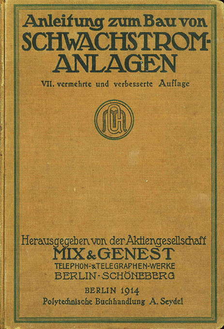 Elektrotechnik – Mix & Genest Telephon- und Telegraphenwerke (Hg.), Anleitung zum Bau elektrischer Haustelegraphen-, Telephon-, Kontroll- und Blitzableiter-Anlagen. [Einband: Anleitung zum Bau von Schwachstromanlagen]. Siebente neubearbeitete u. erweiterte Auflage. Berlin, Seydel 1914. XV, 594 S. mit 857 Abbildungen, OLwd. (Rücken etw. feuchtigkeitsfleckig). Wenige Bl. etw. unfrisch, Titelbl. mit Besitzvermerk. Insgesamt gutes Exemplar.