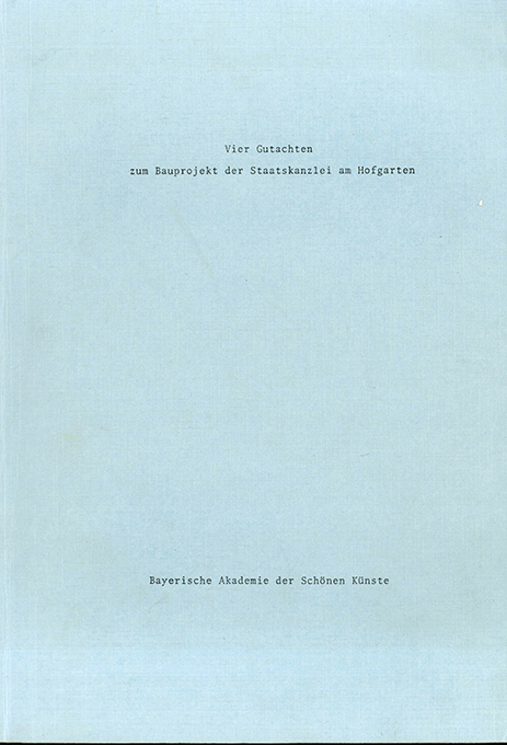 Staatskanzlei München – Hofer, Paul, Christian Norberg-Schulz, Alexander Papageorgiou-Venetas u. Paolo Sica, Vier Gutachten zum Bauprojekt der Staatskanzlei am Hofgarten (eines davon in engl. Sprache). München, Bayer Akademie der Schönen Künste 1986. 4°. 49 einseit. bedr. Bl. mit Skizzen, OBrosch. (minim. Knickspuren). Sonst gutes Exemplar.