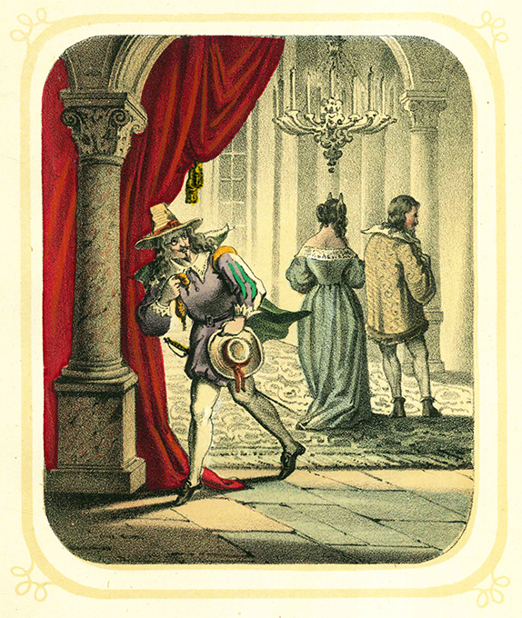 Hosemann – Kolb, C(hristian) F(riedrich) A(ugust), Schauspiele für die Jugend und ihre Freunde zu Aufführung im Figurentheater und Familienkreise. Mit 6 handkolorierten lithograph. Tafeln von Theodor Hosemann. Stuttgart, Schmidt & Spring 1854. 13,5 x 18,5 cm. IV, (2), 120, (2) S. + 6 Tafeln, OPappbd. mit Illustrationen auf Vorder- u. Rückdeckel (stellenw. etw. nachgedunkelt, der Rücken stärker, angestaubt, einige kl. Fleckchen, etw. bestoßen). Textpapier etw. stockfleckig, die Vorsätze stärker. Die Tafeln dagegen fleckenfrei u. frisch. Titelbl. mit sehr kl. nettem Besitzstempel. Insgesamt gutes Exemplar, im Originaleinband selten. Rümann 911. Wegehaupt II.1867. * Die in kraftvollen Farben kolorierten Lithographien zu folgenden, für die Jugend bearbeiteten bekannten Stücken: Die Gaben der Zwerge; Die angenommene Tochter; Fortunat und seine Söhne; Das Vogelnest; Das Wirtshaus im Spessart; Kunz von Kaufungen.