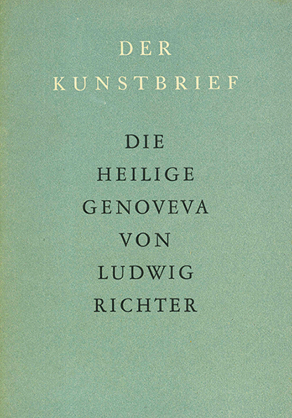 Richter, Ludwig, Die Heilige Genoveva. Einführung von Karla Eckert. (= Der Kunstbrief 36). Berlin, Gebr. Mann 1946. Kl.-8°. 32 S. mit 6 Abbildungen + 16 Tafeln, OBrosch. (minim. verblasst). Gutes Exemplar. EA.