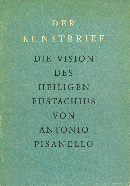 Pisanello, Antonio, Die Vision des Heiligen Eustachius. Einführung von Alfred Hentzen (= Der Kunstbrief 48). Berlin, Gebr. Mann 1948. Kl.-8°. 32 S. mit 5 Abbildungen + 16 Tafeln, OBrosch. (Rücken etw. unfrisch). Insges. gutes Exemplar. EA.
