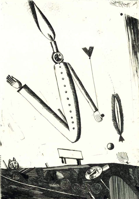 Meckel – ZET 4. Das Zeichenheft für Literatur und Graphik. Hrsg. von Wolfgang Rothe. Mit einer Orig.-Radierung von Christoph Meckel (Plattengr. 10,5 x 14,8 cm, auf kräftigem Büttenkarton). Heidelberg, Dezember 1973. Gr.-4°. 33, (3) S. mit Abbildungen, OKt. (dieser wie meist stellenw. verblaßt). Eine Ecke etwas bestoßen, sonst gut erhalten. * Eins von 1000 Exemplaren. – Texte / Illustrationen von K. Heynicke, K. Krolow, G. Garcia Marquez, Szymanski, Unica Zürn u.a. – Außerdem ein vierseit. Beitrag mit 4 Abbildungen über Rolf Nesch. – Auf Maschinenbütten.