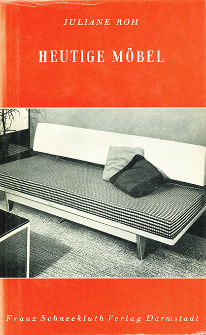 Möbel – Roh, Juliane, Heutige Möbel. (= Wohnkunst und Hausrat / einst und jetzt. Bd. 14). Darmstadt, Schneekluth (1954). 31 S. Text u. 20 Tafeln (Möbel der 50er Jahre), OHlwd. mit illustr. OUmschl. (dieser etw. angerändert u. stellenw. verblasst). Das Buch ansich sehr gut erhalten. EA.