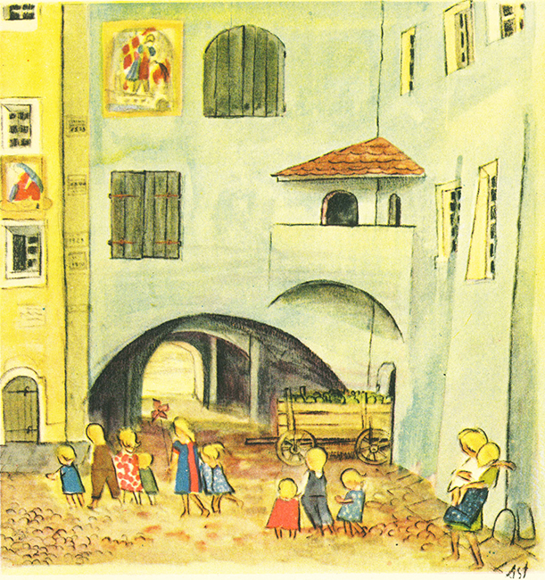 Schäfer-Ast, (Albert), Die Sommerburg. Mit einer Erzählung von Matthias Holnstein. Berlin, Kiepenheuer 1934. 4°. 91 S. mit zahlr. Illustrationen + 16 Farbtafeln, farb. illustr. OHlwd. (etw. nachgedunkelt, wenige winz. Fleckchen). Sonst gutes Exemplar. EA.