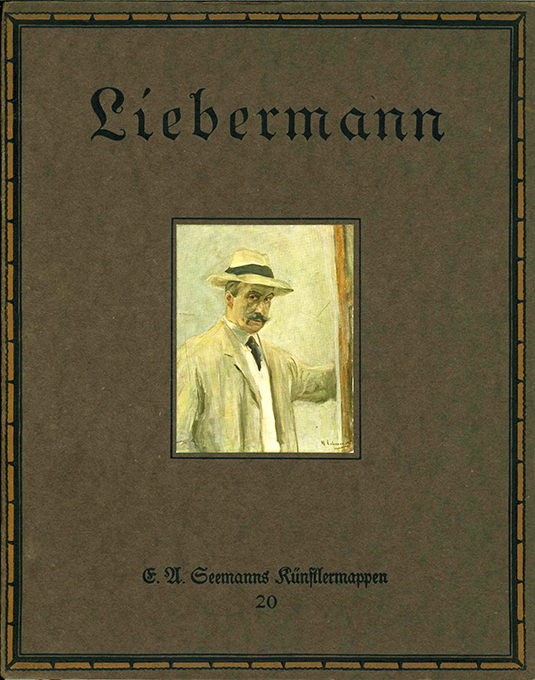 Liebermann, M. – Max Liebermann. Acht farbige Wiedergaben seiner Werke. Einführung von Hans Wolff. (= Seemanns Künstlermappen 20). Leipzig, Seemann (um 1917). 26 x 33 cm. (8 S.) Text mit 2 Abbildungen + 8 Farbtafeln, jeweils auf hellblauen Karton montiert, illustr. OKt. (Kordelbindung, somit sind die Bilder leicht entnehmbar). Sehr gutes Exemplar.