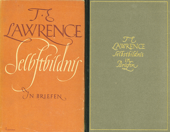 Lawrence, T.E., Selbstbildnis in Briefen. Hrsg. von David Garnett. Übertr. von Hans Rothe. München u. Leipzig, List 1948. 661, (5) S. mit Titelportrait, OHlwd. mit Goldpr. u. OUmschl. (dieser am Rücken verblasst). Gutes Exemplar. DEA.