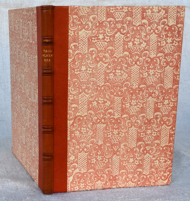 Alverdes, Paul, Mozart. Olten 1949. 47, (11) S., OHldr. im (etw. unfrischen) Schuber. Rücken nur minim. verblasst, sonst tadellos. EA WG² 42. * 43. Publikation der Vereinigung Oltner Bücherfreunde. – Eins von 100 (ges. 600) nummer. Exemplaren der Vorzugsausgabe, von Hand in Oasenziegen-Halbleder gebunden u. vom Verfasser signiert.
