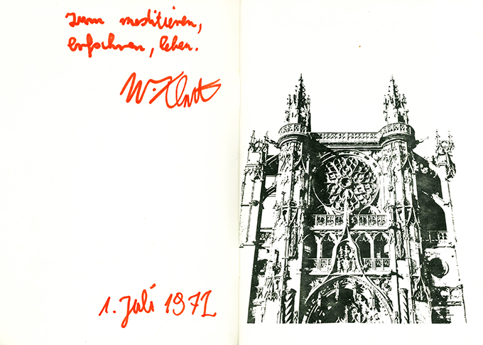 Klatt, Wilfried, [Gedichte und Graphiken]. Moorenbrunn, Privatdruck des Verfassers (1972). 39 S., OKt. Gutes Exemplar. Sehr selten. EA. * Mit Widmung des Verfassers „Zum meditieren, erforschen, leben…“