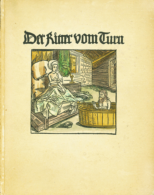 Der Ritter vom Turn von den Exempeln der gotsforcht und erberkeit. Faksimile-Nachdruck der Holzschnitte, erschienen bei Michael Furtner, Basel 1493. Mit einem Nachwort von Kurt Pfister. München, Roland-Verlag 1922. 4°. 48, (4) S. mit 45 Holzschnittabbildungen, OPp. mit handkolor. Deckelillustration (etw. angestaubt, Rücken nachgedunkelt, Kapitale etw. bestoßen). Insges. wohlerhaltenes Exemplar auf Bütten. 1. Auflage.