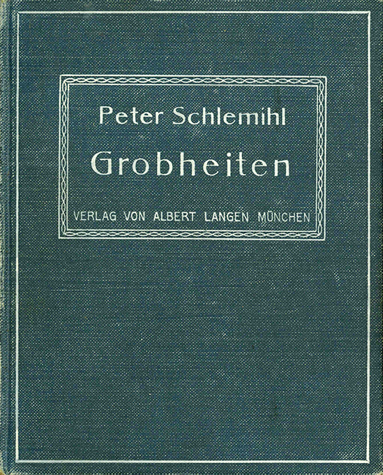 Thoma, Ludwig (hier unter Pseud. Peter Schlemihl), Grobheiten. Simplicissimus-Gedichte. München, Langen 1903. 7.-10. Tsd. 11,5 x 14 cm. XI, 89, (7) S., OLwd. (dieser minim. berieben) mit zusätzlich eingebundener farbig illustr. OBroschur. Vorsatz mit Exlibris u. im Falz eingerissen, Papier wie immer etw. nachgedunkelt. Von diesen völlig üblichen, geringen Gbrsp. abgesehen gutes Exemplar, namentlich die schöne, durch den Leinenband geschützte Broschur.