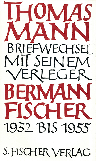 Mann, Thomas, Briefwechsel mit seinem Verleger Gottfried Bermann Fischer 1932 – 1955. Hrsg. mit Vorwort, Vorbemerkungen und ausführlichem Anhang (240 S.!) von Peter de Mendelssohn. Frankfurt, S. Fischer 1973. 888, (8) S. mit Titelabb., OLwd. (Rückentitel etw. berieben). Sonst gutes Exemplar mit OUmschl. Beiliegen 2 Zeitungsausschnitte zu Thomas Mann, u.a. über dieses Buch. EA WG² 91 (Mendelssohn)