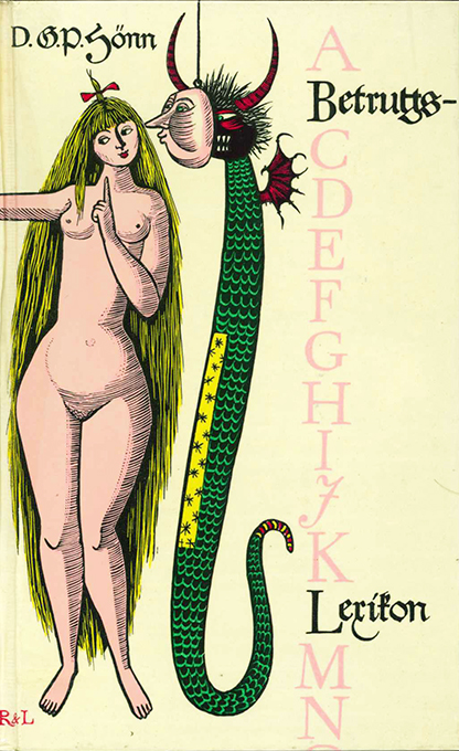 Klemke – Hönn, Georg Paul, Kurzeingerichtetes Betrugslexikon, worinnen die meisten Betrügereyen in allen Ständen nebst denen darwider mehrentheils dienenden guten Mitteln entdeckt werden. Mit 12 Holzstichen u. zwei mehrfach verwendeten Vignetten von Werner Klemke. Berlin, Rütten & Loening 1958. 178, (6) S., orange u. schwarz gedruckt, farb. illustr. OPp. Gutes Exemplar. 1. Auflage. Kunze 247. Tiessen 41.