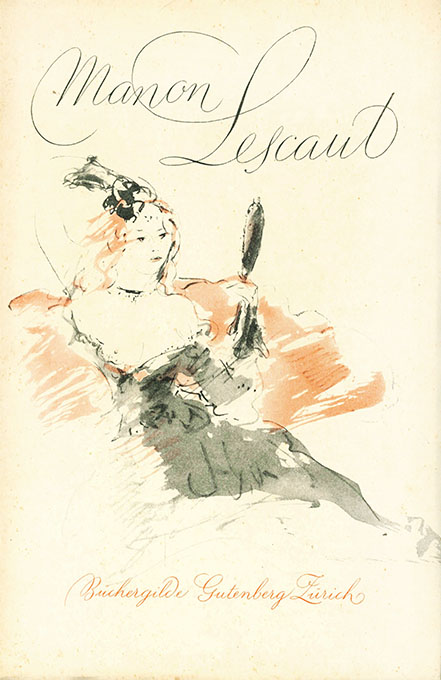 Hug – Prévost, Abbé, Manon Lescaut. Übertr. von Ferdinand Hardekopf. Mit (24 ganzseit, davon 8 farb.) Illustrationen von Charles Hug. Zürich, Büchergilde Gutenberg 1952. 286, (6) S., farb. illustr. OBrosch. (etw. nachgedunkelt, Rücken eingewölbt). Ohne den Pergamentpapierüberzug. Insges. gutes, innen sehr frisches Exemplar. 1. Auflage.