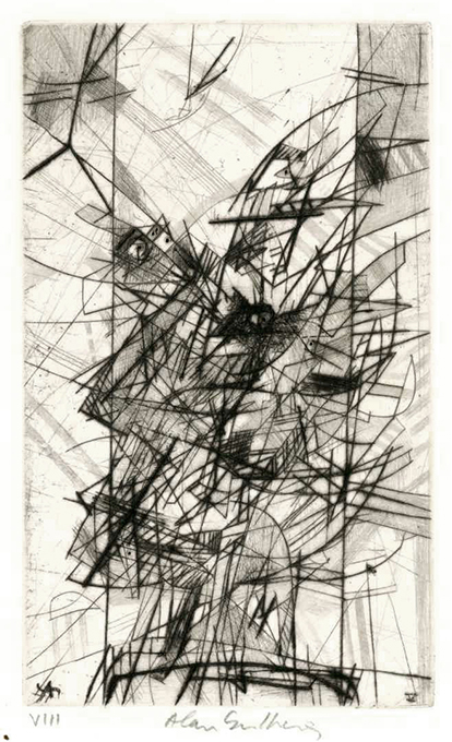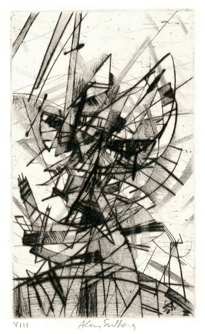 Sundberg – Valéry, Paul, Bemerkungen. Mit zehn (einschl. Einband) Orig.-Kaltnadelradierungen von Alan Frederick Sundberg. Neu-Isenburg 1981. Gr.-8°. (36 S.), OKlappenbrosch. mit transparentem Schutzumschlag im Schuber. Tadelloses Exemplar. Tiessen 1. Spindler 41.19. * 19. Druck der Edition Tiessen. – Eins von 45 (ges. 135) römisch nummer. Exemplaren der Vorzugsausgabe mit einer Suite aller 10 Radierungen, auf Japanpapier abgezogen, nummeriert und signiert. Der Druckvermerk ebenfalls mit Signatur des Künstlers. – Wolfgang Tiessen hat selbst die Texte aus der Original Janson-Antiqua von Hand gesetzt, gedruckt auf Vélin d’Arches. – 5 Radierungen haben eine Plattengröße von ca. 7,7 x 5,3 cm, die weiten 5 Radierungen 7,6 x 12,7 cm.