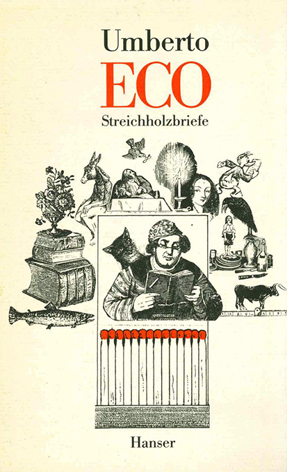 Eco, Umberto, Streichholzbriefe. Mit 14 (zweifarb.) Vignetten von Wilfried Blecher. München, Hanser 1990. 47 S., illustr. OKt. Gutes Exemplar. DEA.