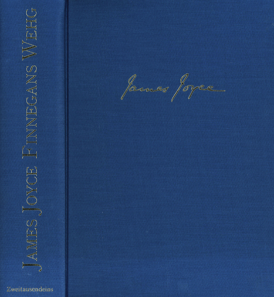 Joyce, James, Finnegans Wehg. Kainnäh UbelSätzZung des Wehrkeß fun Schämes Scheuß von Dieter H. Stündel. Frankfurt, Zweitausendeins 2002. Gr.-4°. (1256 S.), OLwd. mit goldgepr. Joyce-Signatur auf dem Vorderdeckel u. goldgepr. Rückentitel. Tadelloses Exemplar im Schuber. * Englisch-Deutsche Ausgabe, in der von den Kritikern euphorisch bejubelten Neuübersetzung, an der Stündel 17 Jahre gearbeitet hat; mit Anmerkungen.
