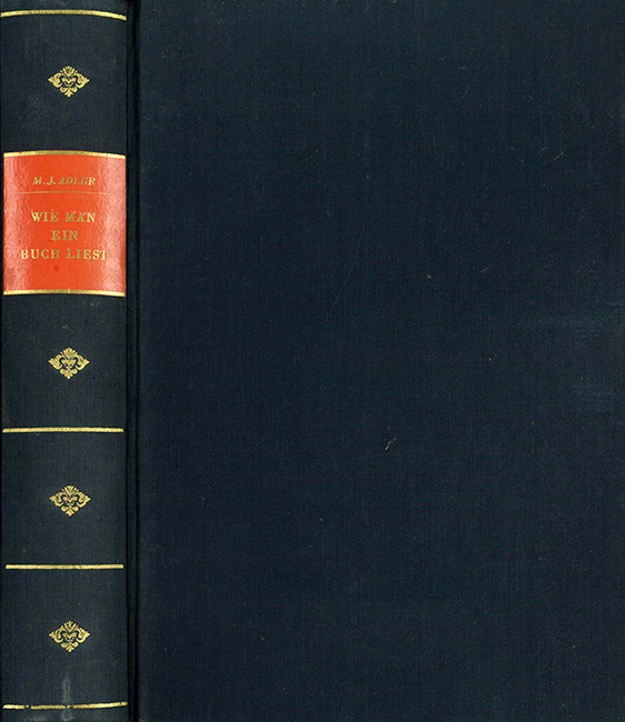 Adler, Mortimer J., Wie man ein Buch liest. Mit einem Verzeichnis der 100 Großen Bücher des Abendlandes. Übersetzt u. bearbeitet von Fritz Güttinger. Zürich u. Leipzig, Amstutz & Herdeg 1941. XII, (2), 393 S., OLwd. (gering angestaubt, 1 winzige Randläsur, Schnitt leicht stockfl.) Insgesamt gutes Exemplar. Selten. DEA.