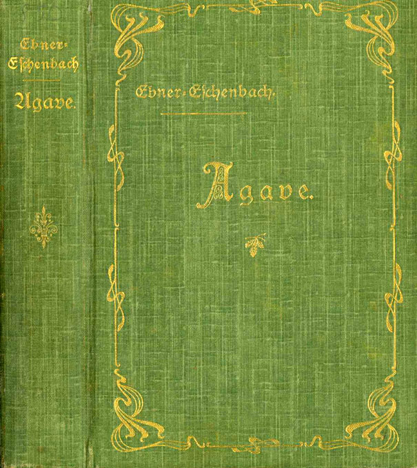 Ebner-Eschenbach, Marie von, Agave. Berlin, Paetel 1903. Kl.-8°. 343 S., Lwd. der Zeit mit Jugendstil-Goldpr. (Kanten etw. berieben, ein Gelenk mit Läsuren). Einige Bl. braunfleckig, Vorsatz mit Exlibris. Insges. gut erhalten. EA WG² 35.