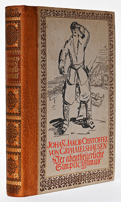 Grimmelshausen, Hans Jakob Christoffel von, Simplizius Simplizissimus. Der Roman des dreißigjährigen Krieges. Bearb. u. eingeleitet von Hans W. Fischer. Mit vielen Zeichn. von Hans Sauerbruch. Berlin, Dt. Buch-Gemeinschaft 1934. Gr.-8°. 396, (4) S., farb. Vorsätze, illustr. OHalblederbd. mit Rückenverg. (Ränder minim. nachgedunkelt). Sonst sehr gutes Exemplar. 1. Auflage. * Zweiter Liebhaberdruck der Gemeinschaft.