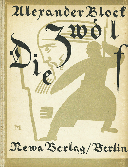 Masjutin – Block, Alexander, Die Zwölf. Übertr. u. mit umfangr. Vorwort (9 Seiten!) von Wolfgang E. Groeger. Mit 4 ganzseit. Illustrationen von W.N. Masjutin. Berlin, Newa 1921. 4°. 34, (2) S., illustr. OHlwd. (etw. nachgedunkelt u. minim. berieben). Vorsätze wie praktisch immer materialbedingt leimschattig. Insges. gutes Exemplar. Oestmann 11.