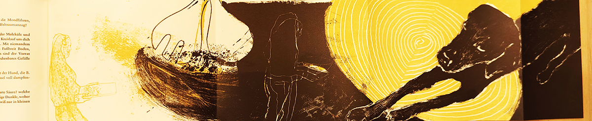 Marinannenpresse – Brickwell, Ditha, Vollendete Sicherheit. Mit 3 Orig.-Lithographien von Linda Wolfsgruber. Berlin 2003. 25,5 x 18 cm (quer). 28, (2) S., 3 mehrfach gefaltete, zweifarbige Graphikbögen, handgebund. OPp. mit zweifarb. Lithographie über beide Deckel. Gutes Exemplar. Seltenes Exemplar der Originalausgabe – das Buch wurde im selben Jahr – verkleinert und ohne Originalgraphiken – im Mandelbaum Verlag nachgedruckt. * 111. Druck der Mariannenpresse. Eins von 100 numer. Exemplaren, von Autorin u. Künstlerin signiert. Der Text wurde aus der Sabon-Antiqua gesetzt, gedruckt auf feingeripptes Zerkall Alt Burgund. Die zweifarbigen Lithographien haben ein Format von ca. 17 x 74,5 cm.