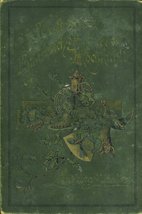 Kochbuch – Amelung, Leopoldine, Illustriertes Kochbuch, enthaltend über 4000 erprobte, für gut bürgerliche Küche sowie für die feine Tafel passende Rezepte (…) Nebst praktischen Anweisungen für Hauswirtschaft, Küche und Keller, zahlreichen Speisezetteln, sowie einem ausführlichen Sachregister nach der Art der Speisen geordnet. Leipzig, Spamer 1901. 3. Aufl. XLV, (3), 575 S. mit Abbildungen im Text u. auf Tafeln, farb. illustr. OLwd. (fleckig, berieben u. bestoßen, ein eingerissenes Gelenkgeklebt, die Bindung dennoch fest). Papier vereinzelt etw. stockfleckig, sonst innen gut erhalten.