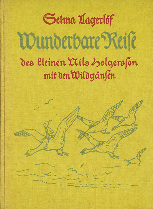 Lagerlöf, Selma, Wunderbare Reise des kleinen Nils Holgersson mit den Wildgänsen. Mit 95 Textabbildungen und 8 farbigen Vollbildern von Wilhelm Schulz sowie einer Übersichtskarte von Schweden mit der offiziellen Reiseroute. München, Langen / Müller (um 1933). 69.-78. Tsd. Gr.-8°. (4), 507, (5) S. + 8 Tafeln, illustr. OLwd. (Rückdeckel leicht, der Rücken stärker stockfl.) Sonst / innen gut erhalten.