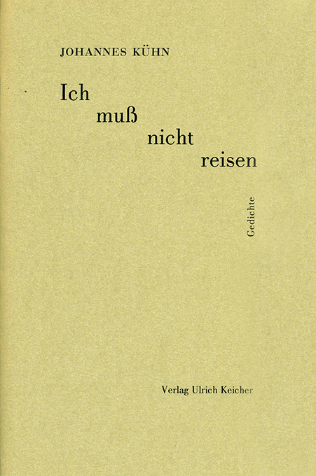 Kühn, Johannes, Ich muß nicht reisen. Siebzehn Gedichte. Warmbronn, Keicher 2004. Gr.-8°. 25, (3) S., OKt. mit OUmschl. Tadellos. EA. * Eins von 300 Exemplaren.