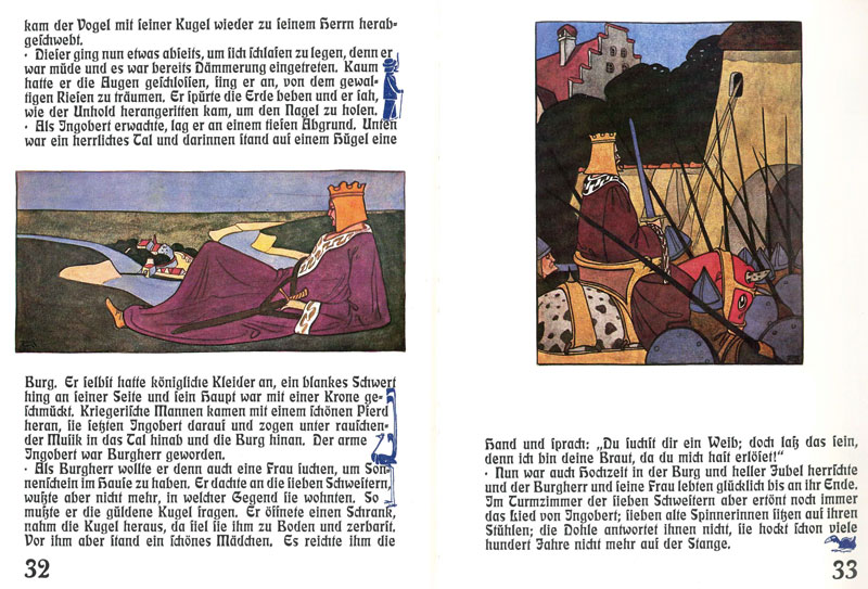 Geigenberger, Aug. (Texte u. Bilder), Märchen-Buch. Faksimile-Nachdruck der EA, München u. Kempten, Kösel 1909. Nachwort zu dieser Neuausgabe von August Obermayr. Wasserburg, „Die Bücherstube“ 1979. 4°. 35 S. mit zahlr. farb. Bildern, Vignetten u. Buchschmuck im Jugendstil, farb. illustr. Vorsätze, illustr. OPp. in Leinenoptik. Tadelloses Exemplar. * Geigenberger war ein in Wasserburg a. Inn gebürtiger Künstler, der bereits mit 34 Jahren gestorben ist und somit das Erscheinen des Märchenbuches, seines illustratorischen Hauptwerkes, nicht mehr erlebt hat. Zuvor hat er u.a. für die „Jugendblätter“, die „Fliegenden Blätter“ u. die „Jugend“ gearbeitet.