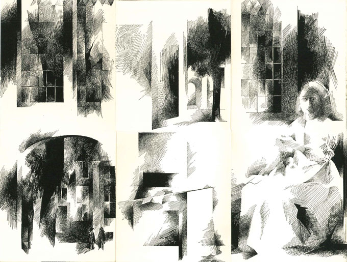 Poensgen, Jochem, Womöglich Fortsetzungen – Faltplan eines Augenblicks. Krefeld, Galerie am Bismarckplatz 1973. 13,5 x 28,5 cm. Raffiniert gefalteter u. mit Einschnitten versehener Bogen (49,5 x 56 cm.) mit 16 Illustrationen, in OBüttenumschl. mit einer mont. Farbabbildung (Rücken über 5 cm eingerissen). Sonst gut. * Eins von 200 numer. Exemplaren, vom Künstler signiert. Unser Ex. mit zusätzl. kleiner Widmung „für Marguerite Schüter – JP“ sowie beilieg. eigenhänd. Briefkarte des Künstlers auf Einladungskarte zu einer Ausstellung, zu dessen Besuch Poensgen Frau Schlüter einlädt. 12 Zeilen.