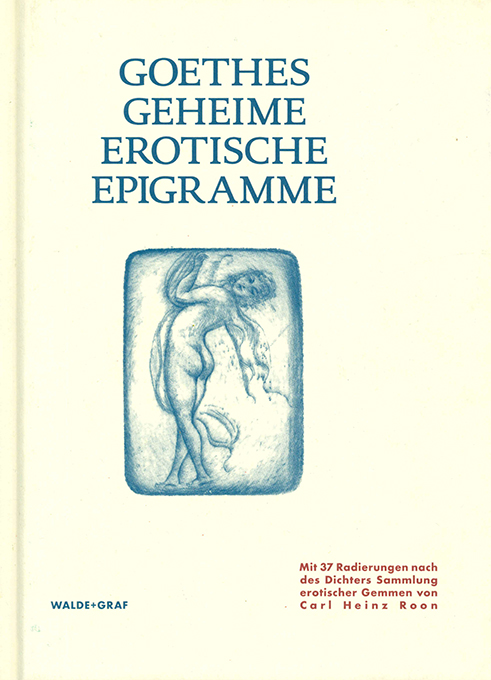 Goethe – [Epigramme] – Goethes geheime erotische Epigramme. Mit 37 Radierungen nach des Dichters Sammlung erotischer Gemmen von Carl Heinz Roon. Berlin, Walde + Graf 2017. (80 S.), illustr. OPp. Tadellos. * Neuausgabe nach einem 1924 in nur 30 Exemplaren erschienenen Privatdruck, hier in Dunkelblau auf büttenartiges Papier gedruckt.