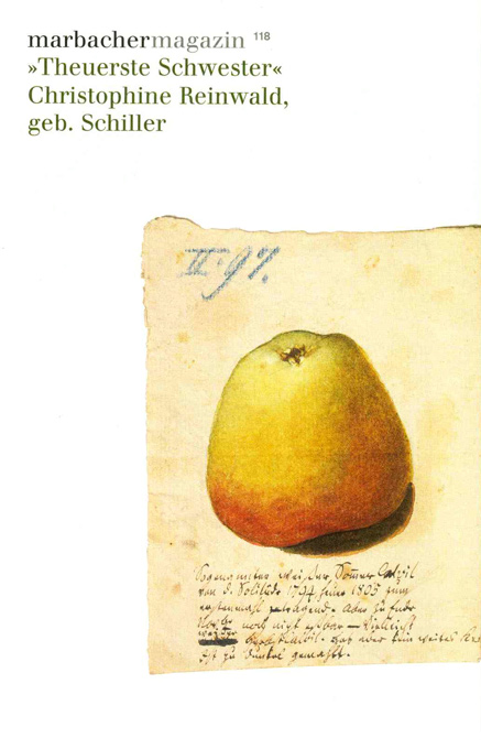 Schiller – Umfeld – Marbacher Magazin 118: „Theuerste Schwester“. Christophine Reinwald, geb. Schiller. Von Edda Ziegler u. Michael Davidis. Marbach, Deutsche Schillergesellschaft / Literaturarchiv 1907. 65 S. mit Vignetten u. ganzseit. Farbabbildungen (überwieg. Blumenbilder), farb. illustr. OKt. mit farb. ill. OUmschl. Tadelloses Exemplar. EA.