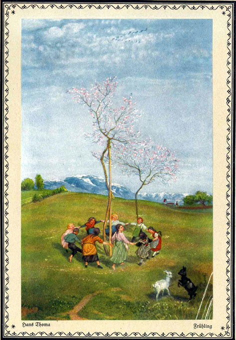 Malerpoeten – Wolf, Georg Jacob, Deutsche Malerpoeten. München, Bruckmann (1901). 4°. 128 S. mit zahlr. (teils ganzseit.) SW-Abbildungen im Text + 20 Farbtafeln, OHalbpergamentbd. mit Modeldruck-Überzugspapier u. Kopfgoldschnitt (etw. bestoßen, wenige kl. Läsuren). Gutes Exemplar in der besten Einbandvariante, eingebunden die tadellos erhaltene farb. illustr. OBroschur. EA. * Über Böcklin, Cornelius, Feuerbach, Friedrich, Marées, Overbeck, Richter, Runge, Schwind, Spitzweg, Steinle, H. Thoma, Waldmüller u.a.