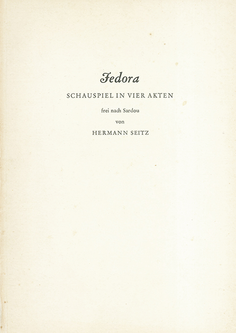 Seitz, Hermann, Fedora. Schauspiel in vier Akten. Frei nach Sardou. Frankfurt, Lembeck 1958. 150 S., OKt. EA. * Vortitel mit dreizeil. Widmung des Verfassers.