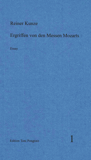 Kunze, Reiner, Ergriffen von den Messen Mozarts. Hauzenberg, Edition Toni Pongratz 2003. 12. Aufl. (12 S.), OKt. mit OUmschl. Tadellos. EA. * Im Druckvermerk von Reiner Kunze signiert.