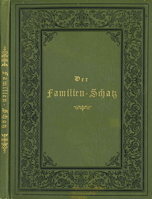 Richter, Ludwig, Der Familien-Schatz. Fünfzig Holzschnitte nach Zeichnungen. Zweite veränderte Auflage. Leipzig, Wigand (ca. 1880). 4°. Titelbl., 50 einseit. bedr. Bl., 1 Bl. Verlagsanzeigen, olivgrüner OLwd. mit ornamentalem Schmuckrahmen, goldgepr. Deckel- u. Rückentitel u. Ganzfarbschnitt (etw. bestoßen, Rückdeckel mit einem weißen Farbfleck). Papier nur minim. nachgedunkelt. Insges. gutes Exemplar. * Die Holzschnitte zu Textzitaten von Goethe (zahlr. zu Herrmann und Dorothea), Nieritz Volkskalender, Hebel (Allemann. Gedichte), Bechstein (Märchen) u.a.