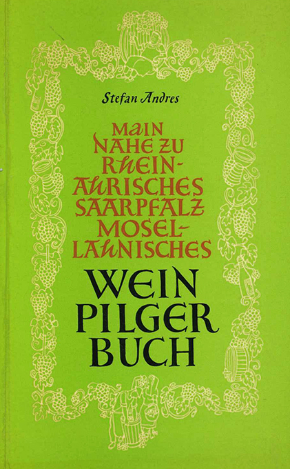 Andres, Stefan, Main Nahe zu Rhein-Ahrisches Saarpfalz Mosel-Lahnisches Weinpilgerbuch. O.O. u. Verlag (Strüder um 1960). 116, (4) S. mit Illustrationen, illustr. OKt. (gering nachgedunkelt). Gutes Exemplar. * Sonderauflage für eine Pharmafirma (″Arte Rautin forte“) mit gedr. Widmungsblatt u. eigenhänd. Signatur von Andres.