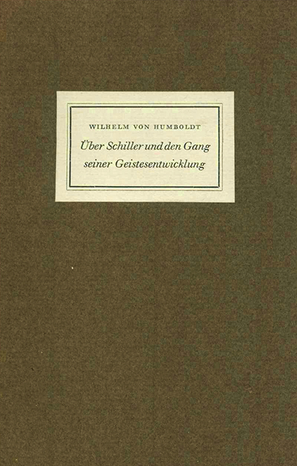 Schiller – Humboldt, Wilhelm, Über Schiller und den Gang seiner Geistesentwicklung. Nachwort von Theodor Heuss. Mit Bildnissen Humboldts und Schillers. (= Turmhahn-Bücherei 11/12). Marbach, Schiller-Nationalmuseum 1952. Kl.-8°. 61, (3) S., OBüttenbrosch. Sehr gutes Exemplar. 1. Auflage. * Jahresgabe für die Mitglieder. Auf einem Papier mit eingeschöpften „Stockfleckchen“.