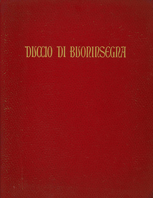 Duccio di Buoninsegna – Brandi, Cesare, Duccio di Buoninsegna. (La Maestà). Text deutsch, spanisch, englisch, französisch u. italienisch. Milano, Collana d’Arte „Pirelli“ 1953. 28 x 36,5 cm. 33, (7) S. Text + 36 (28 ganzseit., 8 doppelblattgr.) Farbtafeln, 1 lose beigefügte SW-Tafel mit Übersichtsfotos des Tafelbildes für den Hochaltar im Dom zu Siena, OPp. mit Goldpr. (etw. berieben u. minim. angestaubt, Kopfkapital mit Läsur). Insges. gutes Exemplar. EA. * Nr. 28 einer kleinen, nummerierten Auflage. Gedruckt auf kräftiges Papier, unter Verwendung der Zusatzfarbe Gold.