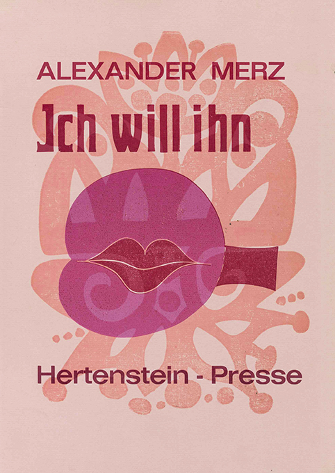 Hertenstein – Merz, Alexander, Ich will ihn. Mit 12 ganzseit. Orig.-Farblinolschnitten von Axel Hertenstein. Pforzheim, Hertenstein-Presse 1988. 25,5 x 35,5 cm. (16 Seiten), farb. illustr. OBüttenbrosch. Sehr gutes Exemplar. Nicht mehr bei Spindler. * Eins von 35 (ges. 50) nummer. Exemplaren der Normalausgabe, im Druckvermerk von Hertenstein signiert. Der Künstler setzte Merz’ Text aus sehr großformatigen Lettern von Hand und druckte sie über die Linolschnitte.