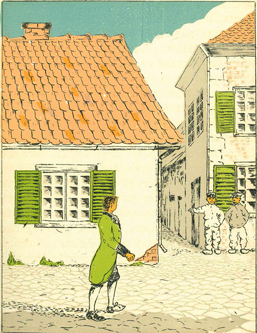 Behr, E., Drei Märchen. Buchschmuck und Schrift von Gustav Möller. Zum Besten der Kriegsgefangenen im Lager Bando (Japan) in Schablonen-Druck gedruckt. (Bando, Eigenverlag) 1918. 2. Aufl. 4°. 79 S. in der Handschrift des Künstlers, mit Zierleisten, kl. Illustrationen u. zweifarb. Schmuckinitialen + 8 lithograph. Farbtafeln, illustr. Vorsätze, farb. illustr. OSeidenbd. (stellenw. verblasst bzw. nachgedunkelt, etwas stockfl., Fußkapital mit Läsur). Vorsätze etw. leimwellig bzw. -schattig, mit einem kl. Adressschildchen einer brasilianischen Sammlerin u. einem japanischen Stempel (Lagerstempel?). Eine Ecke geringfügig bestoßen. Insges. wohlerhalten, innen frisch. Selten. * Enthält die von Behr, einem in Kobe lebenden Deutschen, verfassten Märchen „Hans Wunderlich im Schützengraben“, „Der Glückstaler“ und „Die sprechende Nachtigall“. Der Erlös des Buches war für die deutschen Kriegsgefangenen bestimmt. In diesem Lager, welches für seinen liberalen Charakter u. das kreative Gefangenenleben bekannt war, gab es eine Steindruckerei und die sog. Lagerdruckerei, in denen Druckerzeugnisse aller Art (Veranstaltungsprogramme, Karten, Postkarten, Vortragszettel, Eintrittskarten, Urkunden, Noten, Reklamezettel, Landkarten, Pläne, techn. Zeichnungen, Bücher, Briefmarken für den Lagergebrauch, Gefängniszeitschriften) produziert wurden. – Im Jahr 2006 entstand der Film „Ode an die Freude“, in welchem das Kriegsgefangenenlager Bando sowie die guten Beziehungen zwischen den Kriegsgegnern thematisiert werden.