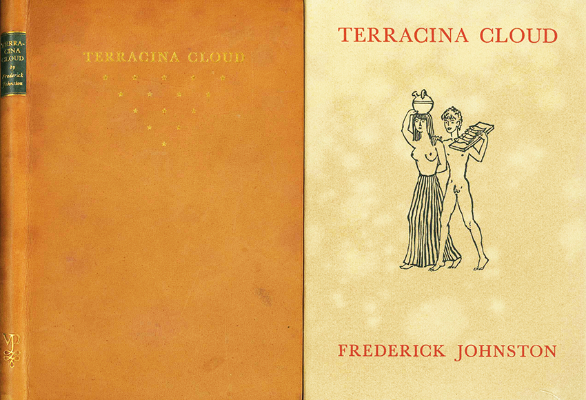 Bodoni, Officina – Johnston, Frederick, Terracina Cloud. Verona, The Verona Press 1936. 1 Bl., (10), 88, (2) S., 1 Bl., OLdr. mit Goldprägung, goldgepr. Lederrsch., Kopfgoldschnitt, handgestochenen Kapitalen u. OUmschl. (dieser mit einem Holzschnittmotiv wohl von Renée Sintenis). Umschlag mit einer kl. Randfehlstelle u. vermutlich aufgrund der Ausdünstungen des Leders fleckig. Das sehr empfindliche Leder mit einigen etwas dunkleren Stellen. Der unbeschnittene Schnitt u. einige Bl. stockfl. Insges. jedoch sehr gutes Exemplar in (stellenw. nachgedunkeltem) Schuber. EA. * Äußerst seltenes, von mir nicht nachgeweisbares Exemplar in einem handgebund. Vorzugs-Ganzledereinband; vermutlich wurden nur sehr wenige oder auch nur dieses eine Exemplar in Kalbleder (statt in dunkelgrünes Leinen) gebunden. Davon zeugt auch eine beiliegende eigenhänd. Briefkarte aus dem Jahr 1983 von Martino Mardersteig, dem Sohn von Giovanni Mardersteig, dem Gründer der Officina Bodoni, an seinen Druckerkollegen Eckehart SchumacherGebler: „Zusammen mit unseren besten Wünschen zum neuen Jahr, dieses Buch, eine Rarität worüber wir uns bald mal unterhalten sollten. Martino“. Auf einer typograph. Neujahrskarte der Stamperia Valdonega. – Die Texte wurden aus der Baskerville von Hand gesetzt u. auf der Handpresse auf Bütten gedruckt. – „The Verona Press“ war mir bis dato unbekannt, selbst Mardersteig erwähnt sie nicht in der Bibliographie seiner Offizin. Hierbei handelte es sich offensichtlich um eine nur wenige Jahre existierende Subedition der Officina Bodoni, in welcher in den Jahren 1936 – 1940 nur wenige, englischsprachige Bücher erschienen sind.