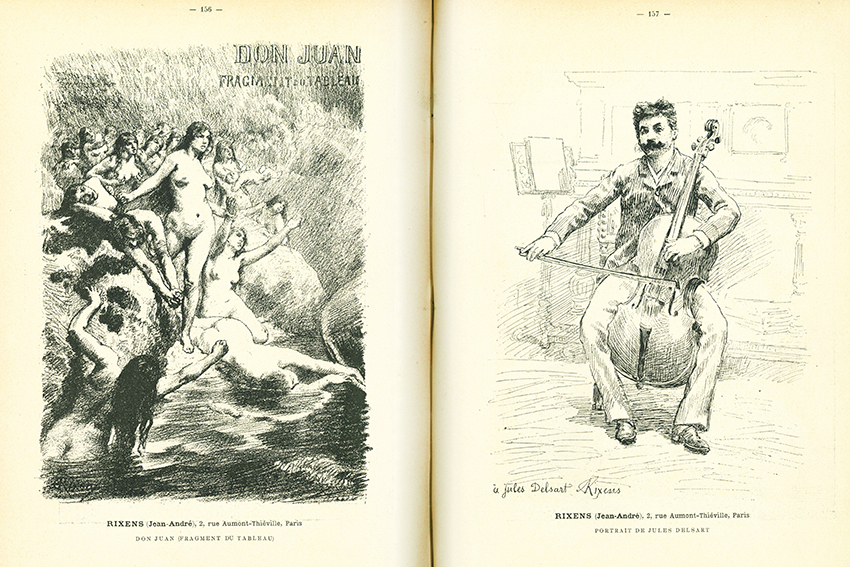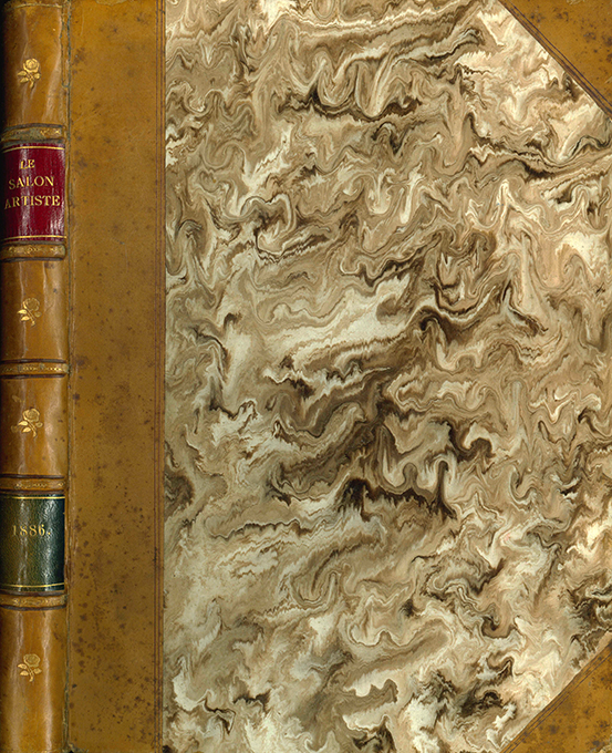 Le Salon-Artiste. Album de dessins originaux d’après les oeuvres exposées, exécutés par les artistes exclusivement pour cet ouvrage. Deuxième année. Paris, Maison Quantin 1886. 4°. (4), IV S. Text, 191 ganzseit. Zeichnungen, Halblederbd. der Zeit auf fünf Bünden, mit Lederecken, 2 goldgepr. Rückenschildern, marmor. Überzugspapier u. Vorsätzen, Kopfgoldschnitt (etw. berieben u. bestoßen, ein Gelenk mit leichtem Einriss). Papier wie üblich an den Rändern nachgedunkelt. Insges. gutes Exemplar. Selten. EA. * Zeichnungen von Bernier, Berteaux, Boisseau, Colin, Dubufe, Édouard, Girardet, JEanniot, Lacroix, Perrault, Rousseau, Vauthier, Weisz u.v.a.