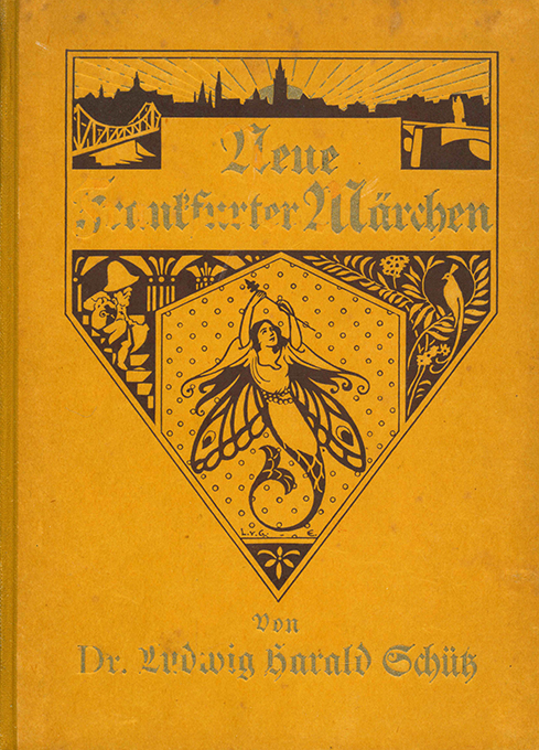 Frankfurter Märchen – Schütz, Ludwig Harald, Neue Frankfurter Märchen. Mit einem Buntbild, vielen Textzeichnungen u. sonstigem Buchschmuck von Luise Gräfin von Geldern-Egmond. Leipzig u. Frankfurt, Kesselringsche Hofbuchhandlung 1917. 91 S. mit farb. Frontispiztafel, illustr. OHlwd. (einige schwache Flecken, kleine Teile des goldgepr. Titels abgeblättert). Insgesamt gutes Exemplar. Selten. EA.