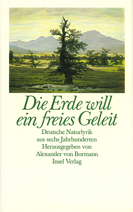 Naturlyrik – Die Erde will ein freies Geleit. Deutsche Naturlyrik aus sechs Jahrhunderten. Hrsg. mit Anhang u. Nachwort von Alexander von Bormann. Frankfurt, Insel 1984. 541, (3) S., OLwd. mit farb. illustr. OUmschl. Schönes Exemplar. Recht selten. EA. * „Die Bedrohung und teilweise unwiderrufliche Zerstörung der Natur macht auch eine Gattung der Dichtung wieder aktuell, die in den vergangenen zwei Jahrzehnten eher als unplitisch, ja weltflüchtig galt: Die Naturlyrik.“ (Klappentext)