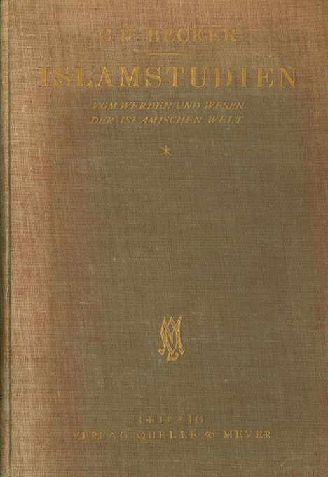 Islam – Becker, C.H., Islamstudien. Vom Werden und Wesen der islamischen Welt. Erster Band (von 2). Leipzig, Quelle & Meyer 1924. Gr.-8°. XII, 534, (2) S., OLwd. mit Goldpr. (dieser stellenw. stark verblasst, Kopfkapital mit kl. Läsuren). Innen gut erhalten. EA. * Dieser in sich geschlossene Band enthält: A. Einleitung. B. Zur Geschichte und Kulturgeschichte der Kalifenzeit. C. Zur Religionsgeschichte des Islam.