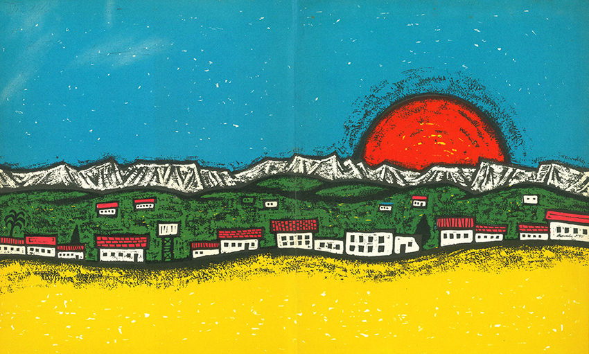 Israel – Shamir, Moshe, Great Day in Israel. Why Ziva Cried on the Feast of First Fruits. Translated by Tamara Kahana. Illustrated by Cyril Satorsky. London u.a., Abelard-Schumann 1960. 18,5 x 25 cm. (32 S.), durchgehend farbig oder zweifarbig illustriert, 2 versch. farb. illustr. Vorsätze, OPp. (Rücken verblasst). Ein Vorsatz mit kl. Spuren einer Buchhandlungsmarke, der andere mit geringen Radierspuren. Insges. gutes Exemplar des wohl in Siebdruck hergestellten Bilderbuches. Selten. Erste englische Ausgabe.
